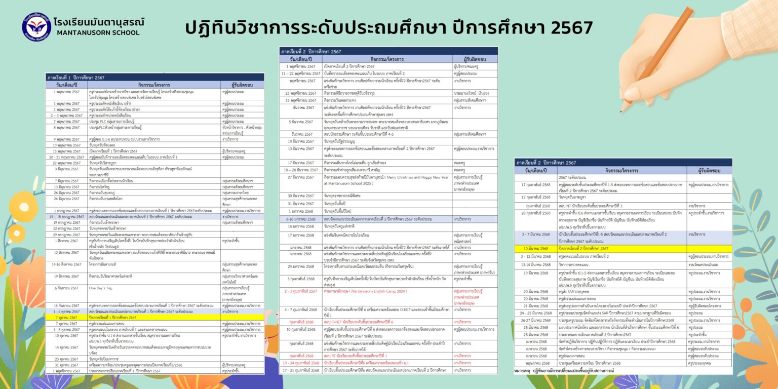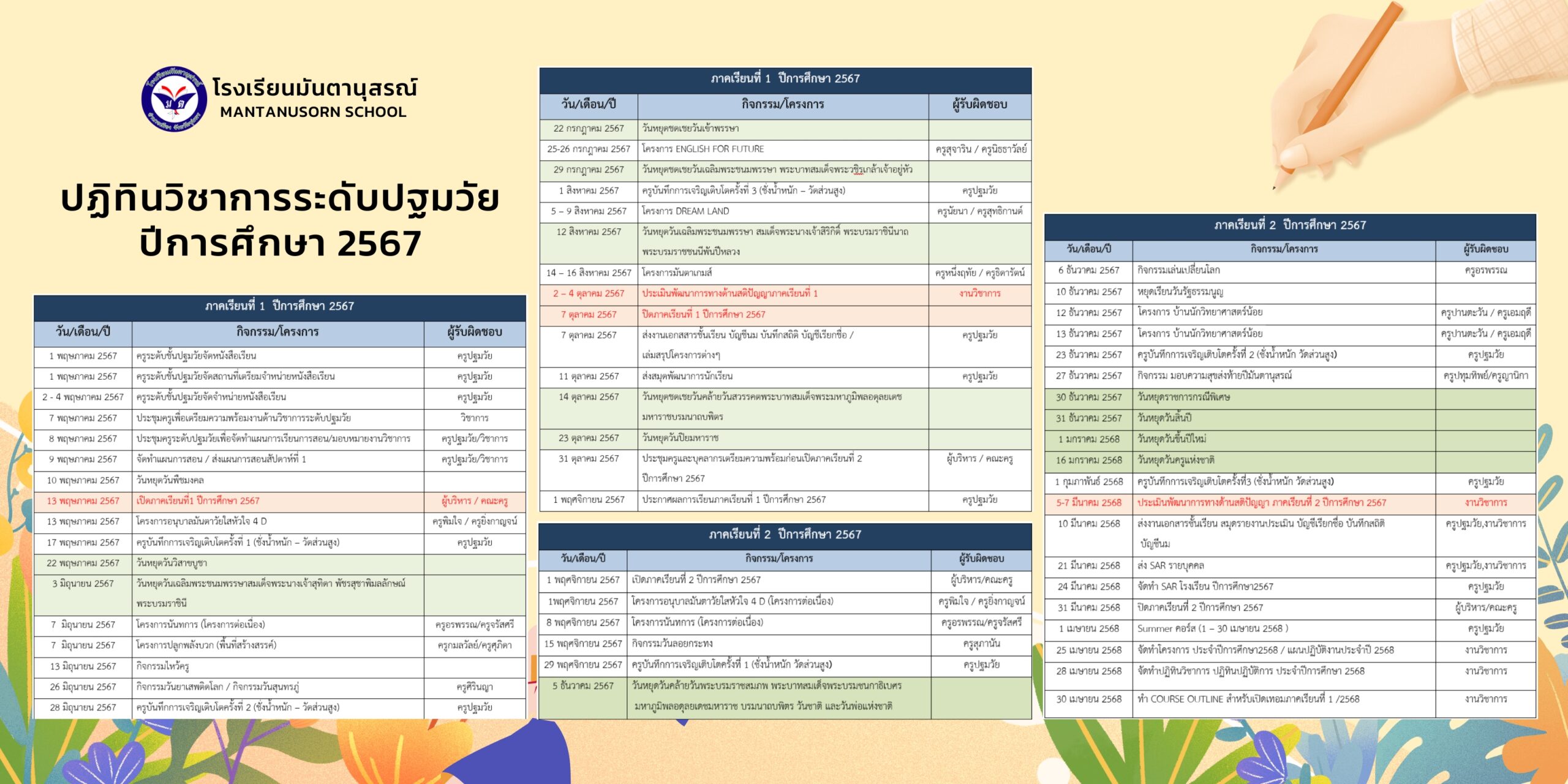 ปฏิทินวิชาการ ระดับปฐมวัย ปีการศึกษา 2567
