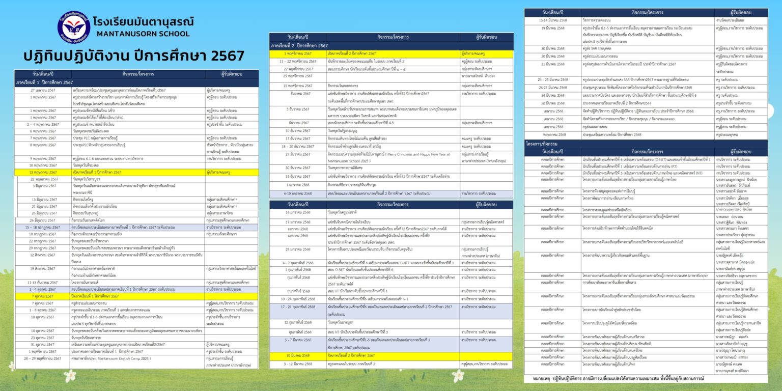 ปฏิทินปฏิบัติงาน ปีการศึกษา 2567